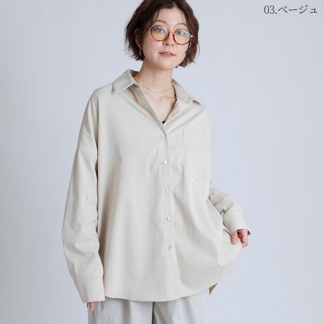 やや起毛感のあるマットなピーチスキン風素材がカジュアルなシャツに大人のエレガンスさをトッピング。