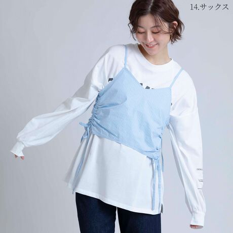コットンシャツのパリッとした質感にサイドギャザーの立体感が映える主役級ビスチェ。