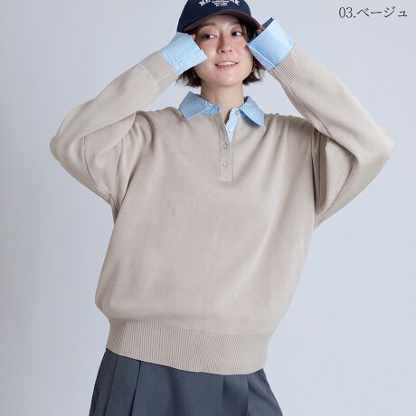 一枚でレイヤード風スタイルが完成するニットプルオーバー。
