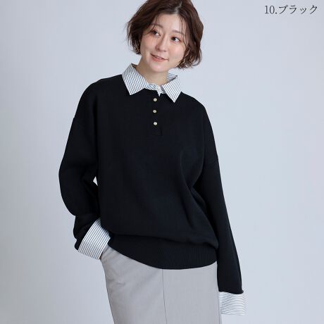 一枚でレイヤード風スタイルが完成するニットプルオーバー。