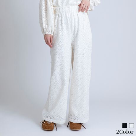 さりげない肌見せと旬のボリューム感でコーデを格上げしてくれるアイレットレースパンツ。