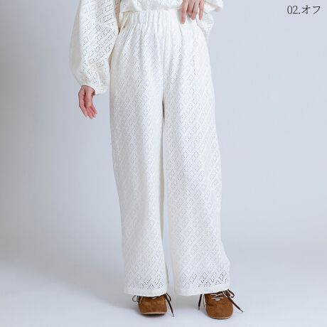 さりげない肌見せと旬のボリューム感でコーデを格上げしてくれるアイレットレースパンツ。