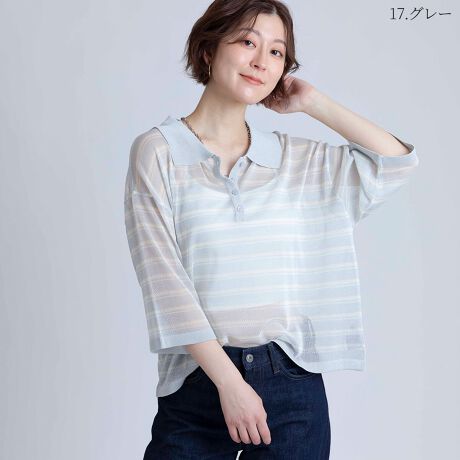柔らかな透け感とニュアンスある配色ボーダーで、女性らしくもあり知的な雰囲気も纏うひと品です。