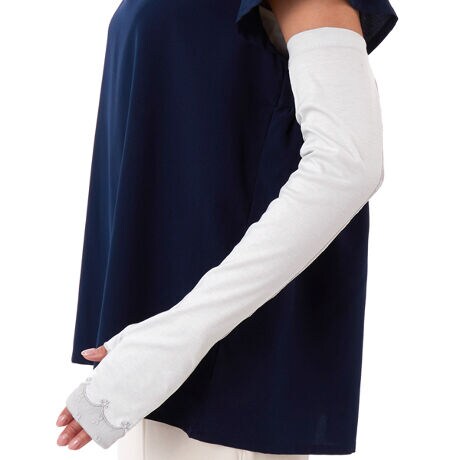 指無しロングタイプ。長さ:50cm。遮蔽率:94.1%機能:保湿接触冷感。親指穴あり。