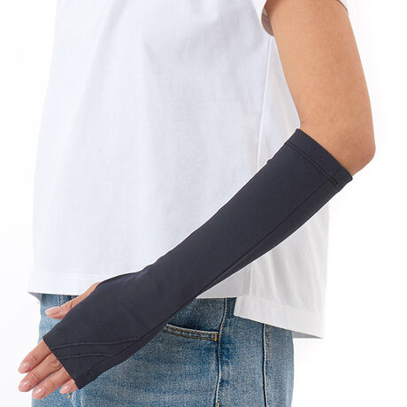 [型番:6141MS4952101]持続冷却効果のある素材を使った使い勝手の良いアームカバータイプです。指無しセミロングタイプ。長さ:33cm。遮蔽率:99.1%親指穴ありタイプ。