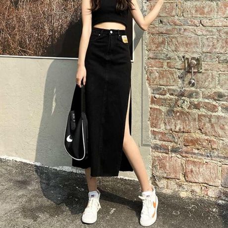 -サイドのスリットがセクシーなデニムスカート