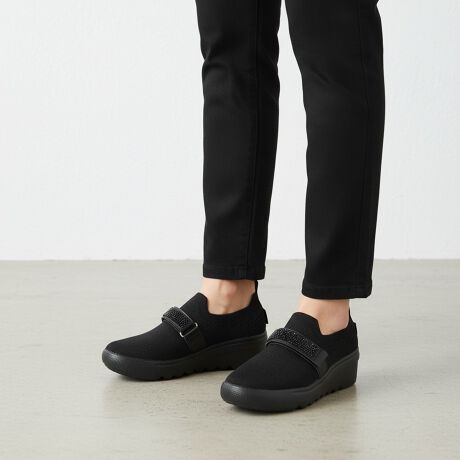 アッパー:ニット生地の程よいキラキラがベルトのラインストーンとマッチしていてコーディネートに落とし込みやすいです。