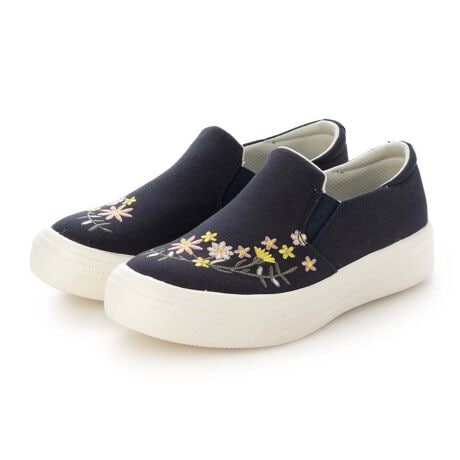 レトロで可愛らしい花刺繍がアクセントのキャンバススリッポンです。カジュアルながらも女性らしいデザインで、幅広いコーディネートに合わせやすい一足です。