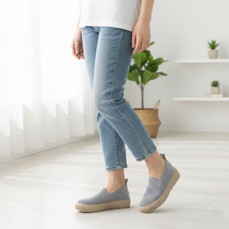 ・軽やかな履き心地: 通気性の良いニット素材が足に優しくフィットし、快適な履き心地を提供します。