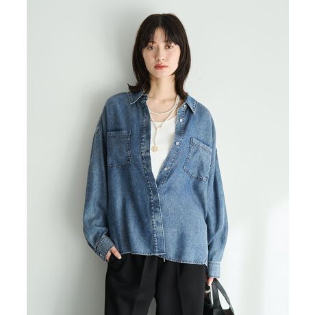 とろみのあるライトオンスのデニム素材で仕立てたシャツ。