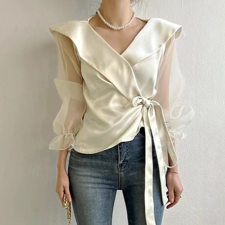 ラップデザインシアースリーブブラウス
