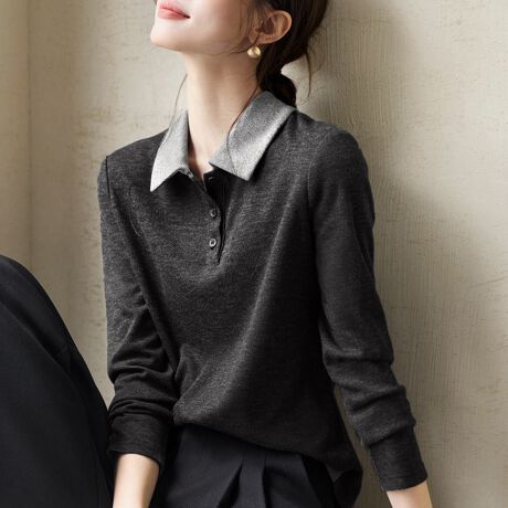 ポロ襟に配色デザインを施した長袖トップスです。