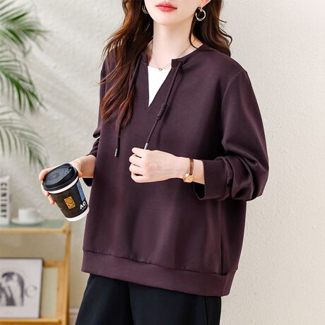 Vネック仕様の長袖プルオーバーは、首元に抜け感を与えるすっきりとしたデザインです。
