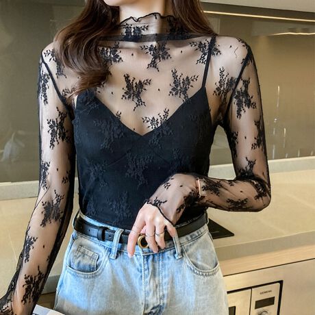 袖や裾まで透け感のあるレースが施され、インナーとのレイヤードで表情が変わるデザインです。