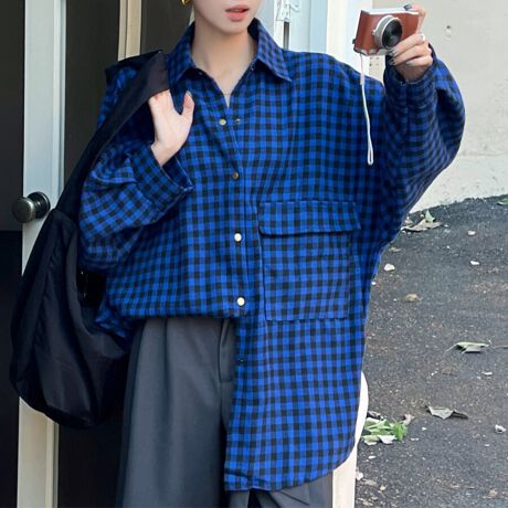 襟元はシャツカラーで、きちんと感とカジュアルさを両立したデザインです。