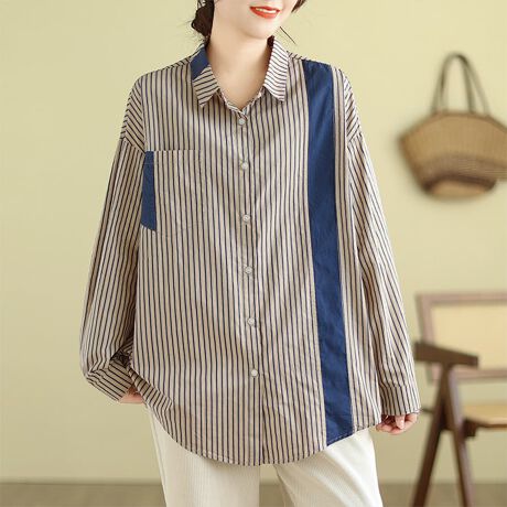 ストライプ柄×配色切替が映える長袖シャツです。