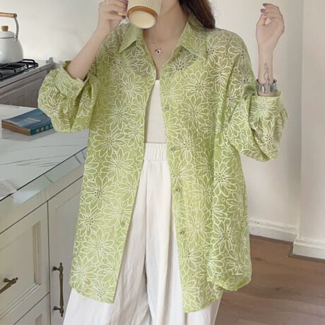 軽やかな素材感で、春秋の羽織りにもトップス使いにも活躍する一枚。