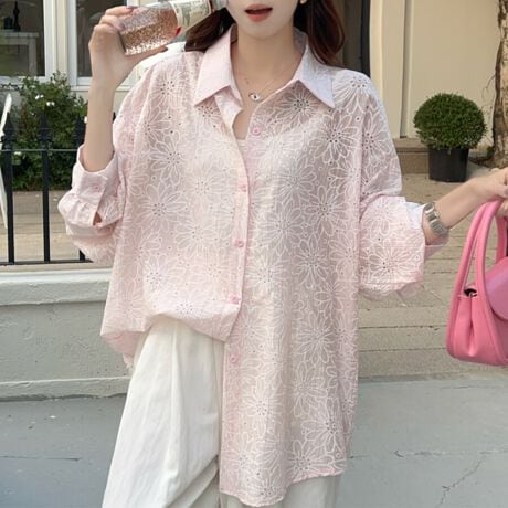 総柄刺繍が目を惹く長袖シャツです。