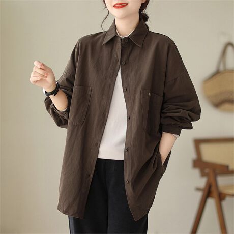 ゆったりとしたシルエットが魅力の長袖シャツです。