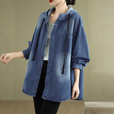 デニム素材にフードを組み合わせた、こなれ感たっぷりのシャツジャケットです。