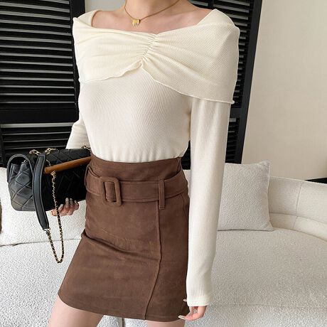 デコルテをきれいに見せるオフショル風シルエットで、抜け感のある着こなしが叶います。
