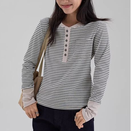 ボーダー柄に配色ディテールを組み合わせた長袖トップスです。