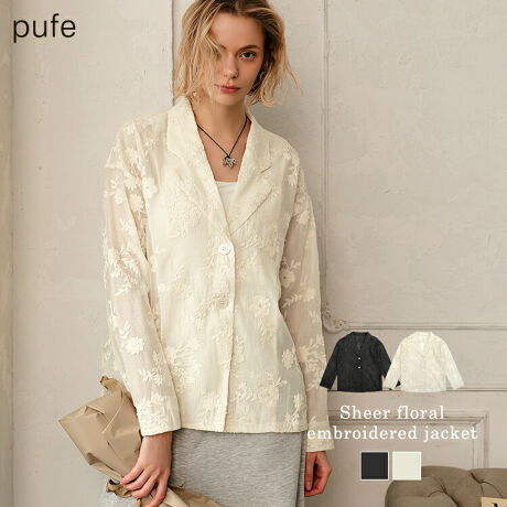 シンプルなコーデに合わせるだけで、フラワー刺繍がトレンドをおさえ上品な印象に◎