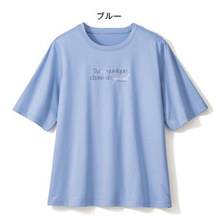 [型番:52694]二の腕を隠す五分袖に、背中や脇の肉感を拾わない余裕のあるシルエット。シルケット加工の光沢が上質な、大人仕様のTシャツです。上品なラメ入りロゴがポイントになり、若々しく華やかな表情に。※グレージュ LLサイズの販売はございません。