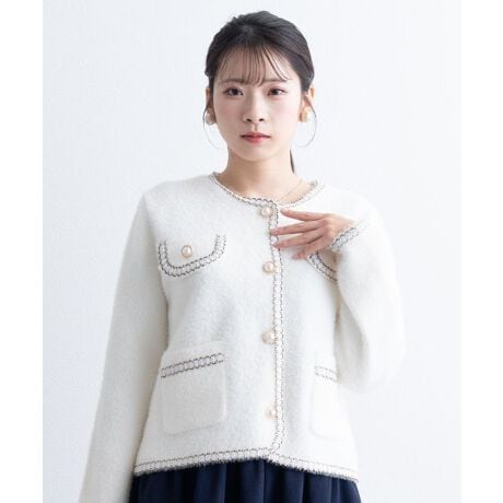 パール調ボタン×縁取りデザイン