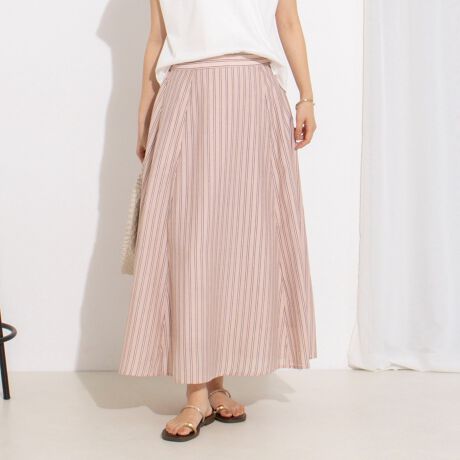・縦ラインを強調する柄で、すっきりとしたスタイルアップ効果のあるフレアスカート