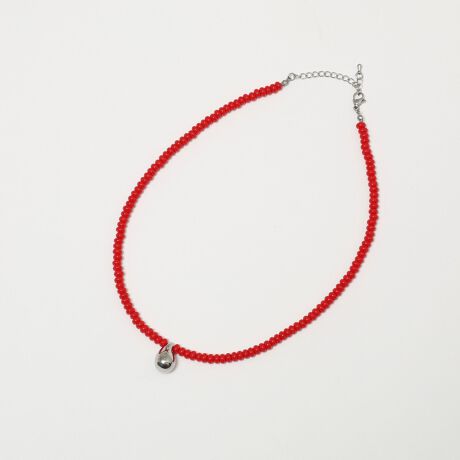 ・カラービーズにシルバーのドロップパーツをトップに配したネックレス