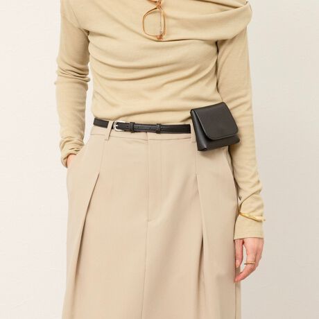 ・ベルト部分は長さ調節が可能なので、ウエストにぴったりフィットさせたり、少しルーズに斜め掛けしたりと、お好みのスタイルで着用いただけます。