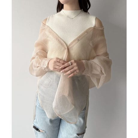 mipiarl 2WAYシャツブラウス+ノースリニットセット