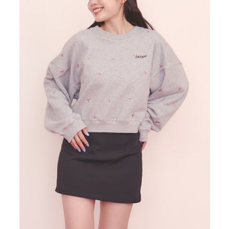 総柄刺繍スウェットトップス Rose Embroidery