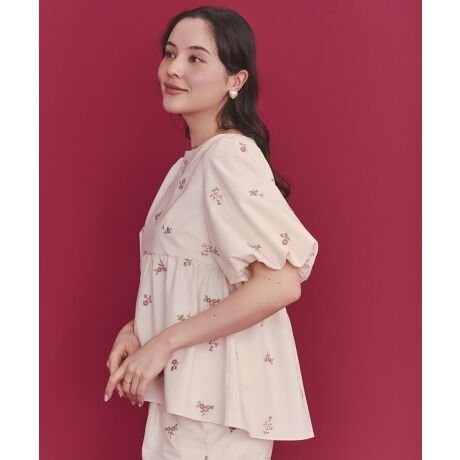 繊細な花柄刺繍を施したペプラムトップス。 アイボリーには華やかで大人可愛い配色を、ブラックには鮮やかな色彩が映える、洗練された遊び心のある配色をあしらいました。トレンドのペプラムデザインに、デコルテを美しく見せるボートネック、柔らかなパフスリーブを取り入れました。大人が品よく着られる絶妙なバランスに仕上げることで、オフィスカジュアルから休日のおしゃれまで幅広く活躍します。同素材のストレートパンツと合わせた、セットアップでの着用も可能。日常をぐっと華やかに彩ってくれる一着です。