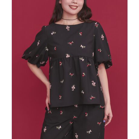 繊細な花柄刺繍を施したペプラムトップス。 アイボリーには華やかで大人可愛い配色を、ブラックには鮮やかな色彩が映える、洗練された遊び心のある配色をあしらいました。トレンドのペプラムデザインに、デコルテを美しく見せるボートネック、柔らかなパフスリーブを取り入れました。大人が品よく着られる絶妙なバランスに仕上げることで、オフィスカジュアルから休日のおしゃれまで幅広く活躍します。同素材のストレートパンツと合わせた、セットアップでの着用も可能。日常をぐっと華やかに彩ってくれる一着です。