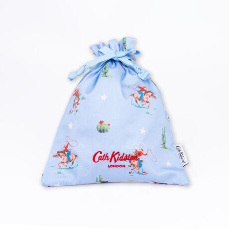日本限定のキッズアイテムが初登場!日本の学校や幼稚園での生活に寄り沿いつつも、Carh Kidstonらしさ溢れるアートでHappyで毎日が楽しくなるアイテムたちです♪2つのアートを組み合わせた遊び心のあるドローストリングポーチ。柔らかな薄手のコットン素材で、軽く持てるのがポイントです。使い勝手の良いサイズ感なので、お子様はコップ入れとしても、小物入れとしても、もちろん大人も使える万能アイテムです。同じアートの巾着シリーズでお揃いで揃えると、より可愛さアップ♪【Ribbon Bow】今シーズンイチオシのリボンアート。サックスのドットと合わせて、フェミニンながらも、少し背伸びした大人っぽさのあるデザインです。【Cowboy Ditsy】Cath Kidsrtonのアイコン的なアートである、カウボーイ。ストライプと組み合わせて元気いっぱいなデザインに仕上げています。