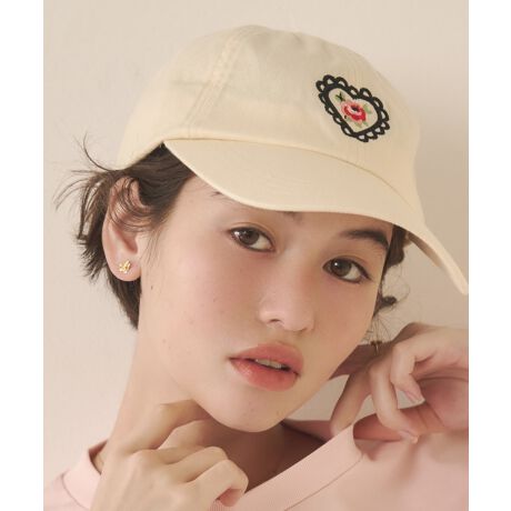 [型番:01ACZ007]Cath Kidstonらしさたっぷりな、レースハートモチーフの刺繍がワンポイントになったベーシックなキャップ。後ろにはリボンロゴの刺繍を施したり、内側のパイピングにも花柄をプリントしたりと、細部にまでこだわりが詰まったデザインになっています。後ろのベルトでサイズ調整が可能です。