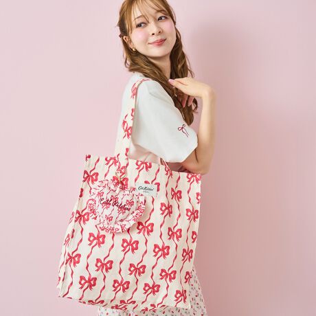 収納力たっぷりな、マチありデザインのスクエアトートバッグ。しっかりしつつも重たくならない、程よい厚さのコットンキャンバスに8種類のアートをプリントしました。まるで宝探しのように、お気に入りを探すワクワク感を楽しんでください♪バッグはA4サイズが横向きに余裕を持たせて入るサイズ感。もちろんPCも入るので、デイリー使いにはもちろん、一泊旅行にもおすすめです。内側には小物を入れられるポケットと、トートバッグの横幅と同じサイズの大きなポケット付き。PCや書類などがバッグの中で斜めにならず、すっきり収納していただけます。ハンドルは肩掛けできる長さで、チャームなどをつけられるDカン付きです。同じシリーズで展開しているハートフリルポーチチャームをつけるのもおすすめです。【Ribbon Bow】今シーズンイチオシのリボンアート。ストライプ調なので程よく大人っぽい仕上がりです。様々なアイテムで、カラー豊富に展開予定です。【Lace Hearts】レースハートにローズが描かれた、Cath Kidstonらしさが詰まったアート。ドットの組み合わせがポップな印象です。【Roses and Hearts】ローズの蕾と小さなハートが散りばめられたアート。アーカイブからアレンジされたアートは、ブラックやアイボリーベースで大人っぽい仕上がりです。【Flower Stripe】イエローのストライプにピンクのお花がポップで可愛らしいアート。どこか懐かしさを感じさせてくれる、レトロなデザインです。【Hankie rose】ミントカラーのベースにピンクのお花が散りばめられた優しい印象のアート。キュンとするような懐かしさのある、アーカイブのアートです。【Gingham Bunches】手書きのギンガムチェックにミニブーケが散りばめられたフェミニンなアート。新作のアートを一足早くお披露目です。