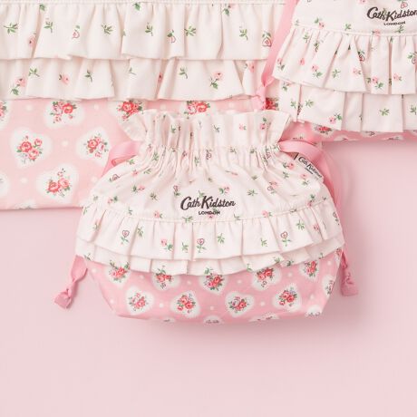 日本限定のキッズアイテムに新作が初登場です!日本の学校や幼稚園での生活に寄り沿いつつも、Carh Kidstonらしさ溢れるアートでHappyで毎日が楽しくなるアイテムたちです♪フリル、ピンク、ハートと、かわいいを詰め込んだ、つい自慢してしまいたくなるぐらい、とびっきりフェミニンなドローストリングポーチ。柔らかな薄手のコットン素材で、軽く持てるのがポイントです。使い勝手の良いサイズ感なので、お子様はコップ入れとしても、小物入れとしても、もちろん大人も使える万能アイテムです。同じデザインのランチポーチやレッスントートと揃えると可愛さUP!