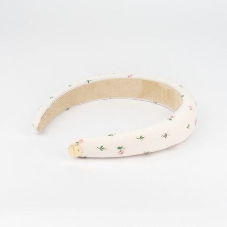 [型番:01ABZ026]ぷっくりと立体的なシルエットがおしゃれ心をくすぐる、レトロなデザインのカチューシャ。この秋イチオシのアート「Lace Sprigs」をプリント。小さなローズに、レースハートのローズがアクセントになった、シックな色合いのアートです。同じアートのバッグやお洋服も続々と登場するので、コーディネートを楽しんでください♪