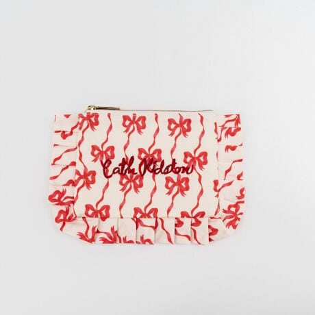 リボンロゴの刺繍がキュンとさせてくれる、人気のティッシュポーチに、フリルデザインが新登場です!アートのかわいさにプラスしてフリルのフェミニンさが、カバンの中から取り出すたびに、Happyな気持ちにさせてくれるアイテムです。ポーチはファスナーポケット付きなので、お薬やアクセサリーなど、細かいものを収納して頂けます。同じアートのスクエアトートバッグやドローストリングポーチとお揃いにしたり、ギフトにもおすすめです◎【Ribbon Bow】今シーズンイチオシのリボンアート。ストライプ調なので程よく大人っぽい仕上がりです。様々なアイテムで、カラー豊富に展開予定です。【Lace Hearts】レースハートにローズが描かれた、Cath Kidstonらしさが詰まったアート。ドットの組み合わせがポップな印象です。【Roses and Hearts】ローズの蕾と小さなハートが散りばめられたアート。アーカイブからアレンジされたアートは、ブラックやアイボリーベースで大人っぽい仕上がりです。【Flower Stripe】イエローのストライプにピンクのお花がポップで可愛らしいアート。どこか懐かしさを感じさせてくれる、レトロなデザインです。【Hankie rose】ミントカラーのベースにピンクのお花が散りばめられた優しい印象のアート。キュンとするような懐かしさのある、アーカイブのアートです。【Gingham Bunches】手書きのギンガムチェックにミニブーケが散りばめられたフェミニンなアート。新作のアートを一足早くお披露目です。【Ribbon Bowについて】商品写真ではファスナー部分がレッドですが、実際の商品はアイボリーとなっております。