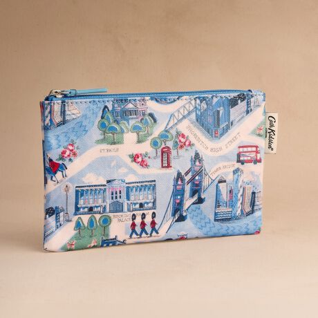 [型番:W7644901]お財布としても、ポーチとしても使える、フラットでコンパクトなジップドパース。ポケットやバッグに収納しやすいすっきりとしたシルエットが魅力です。他のコレクションとの組み合わせを楽しむのもおすすめです。タワーブリッジや赤い2階建てバスといったロンドンの象徴的な景色を、ブランドの代名詞である繊細な花々と共に、美しいブルーのトーンで描き出しました。Cath Kidstonを代表するキャラクターたちも顔を覗かせ、街の魅力を余すところなく表現しています。