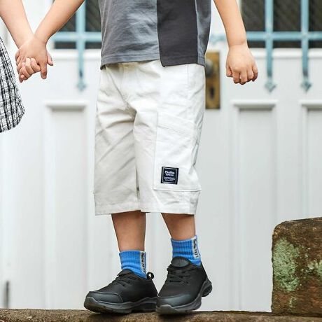 丈夫でハリのある生地感がメンズライクでかっこいいハーフパンツ。
