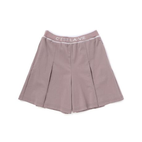 編み立てリブのロゴ入りのウエストがスポーティーな印象のキュロットパンツ。