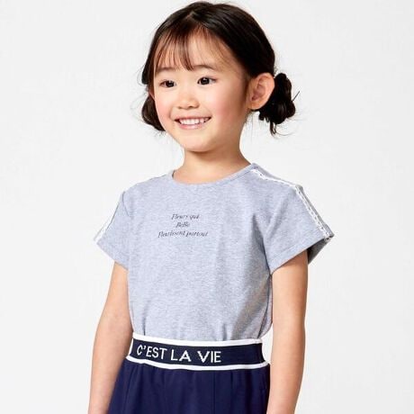 肩から袖のラインにはレースでラインを入れてガーリーなアクセントに。