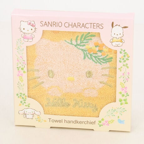 優しいミモザの花柄が広がる、心がホッとするタオルハンカチ。キャラクターがナチュラルな色合いに溶け込んで、大人可愛く持てるデザインです。