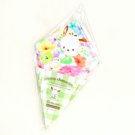 大人っぽいパステルビビットな水彩花柄とキャラクター達が戯れてるよ。まるで花束のようなブーケの形のタオルハンカチ。今年はツインリトルスターズも仲間入り!
