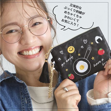 爆速レシピクリエイター・およねさん×レタスクラブコラボ ぷっくり刺繍がかわいい2WAYポーチ