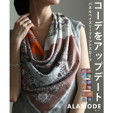【スカーフ】 レディース アクセサリー ペイズリー柄 ブルー ネイビー オレンジ 春 夏 秋 冬
